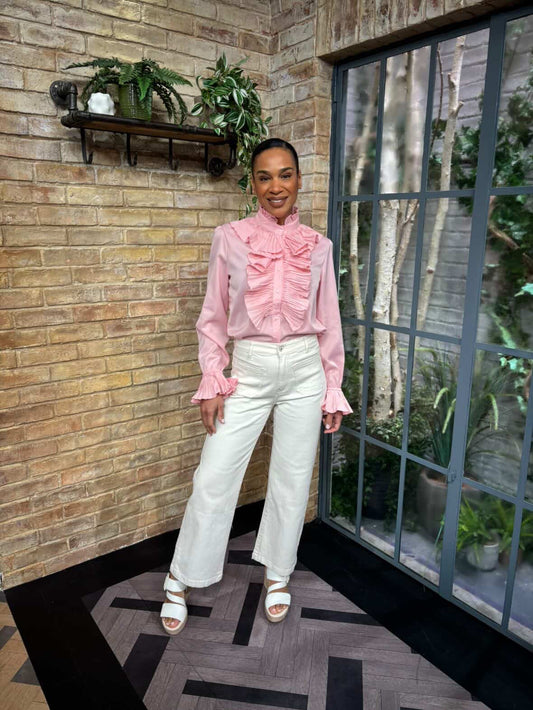 Poppy Wide Leg Jeans Front Pockets (Cream)