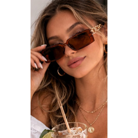 Amber Gold Chain Statement Sunglasses – Rectangular Luxe Frames