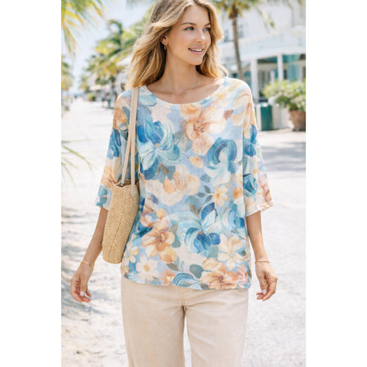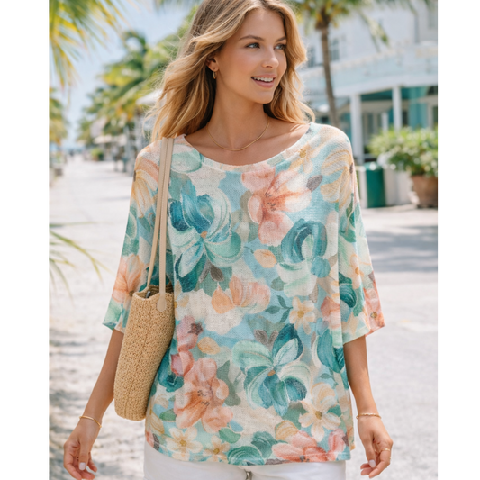 Hot Pink Fine Knit Top – Pink Floral Summer Knit