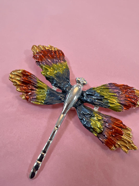 Magnetic Brooch Dragonfly Teal Green & Silver