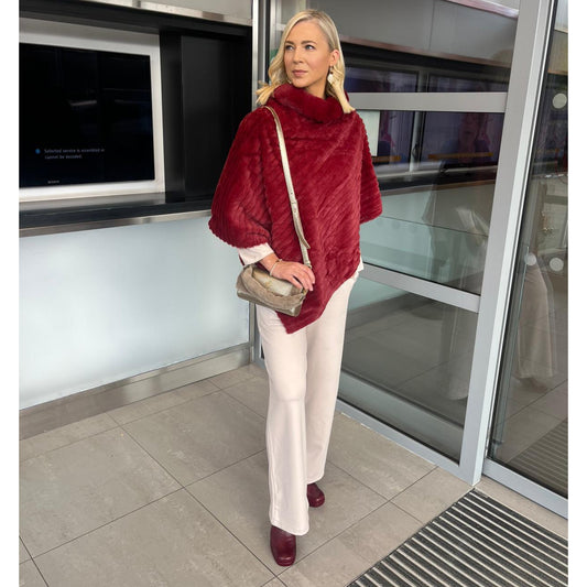 Wool Effect Poncho Wine