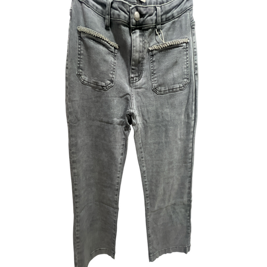 Grey Stretch Straight Leg Jeans Jewel Pocket Detail