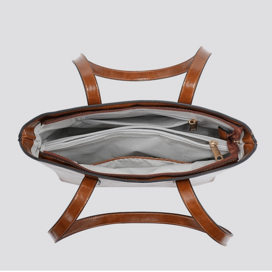 Beige Leatherette Tote Bag/Crossbody
