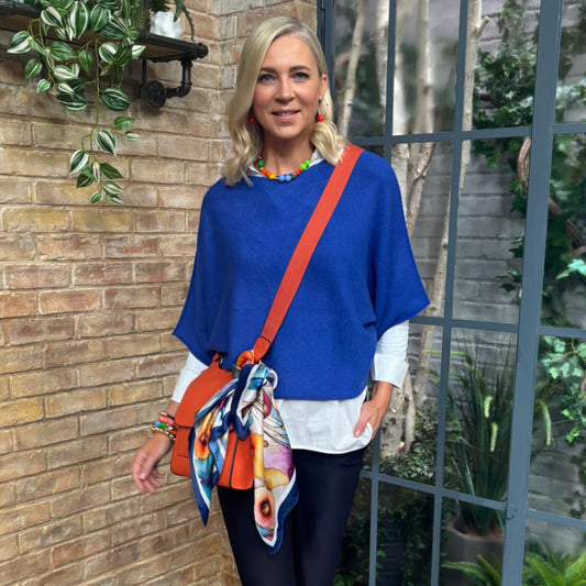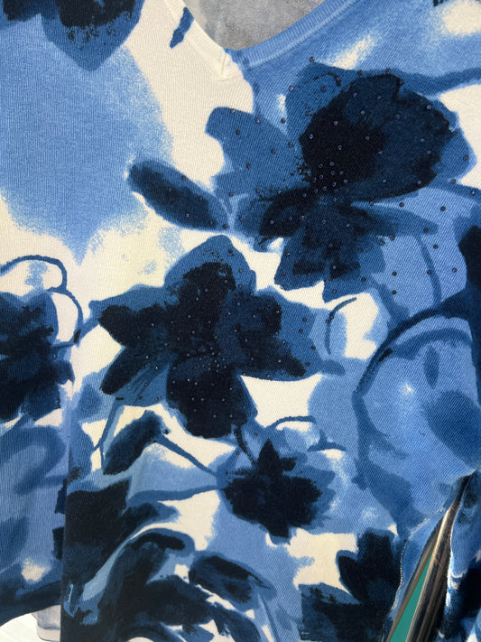 Rita Blue & White Fine Knit Jumper Crystal Design