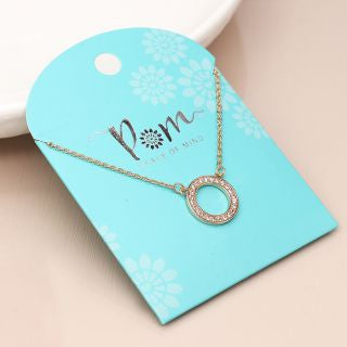 POM Faux Gold Crystal Set Circle Pendant Necklace