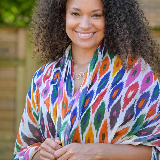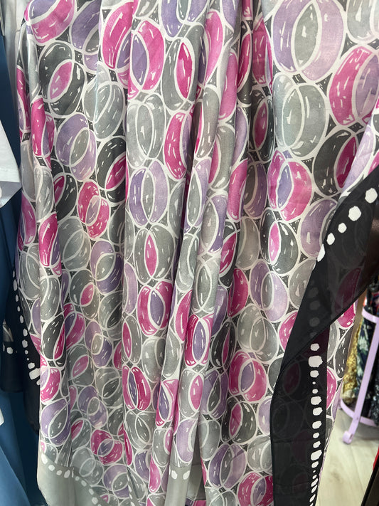 Lightweight Pull Through Neckscarf Black & White Flowers