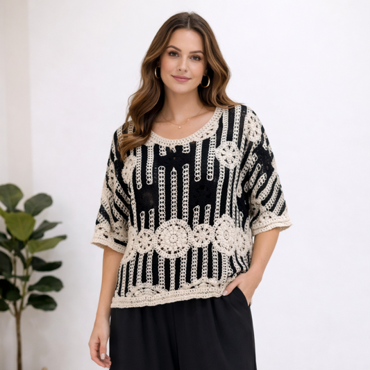 Amelia Navy Pleated Chiffon Top with Sheer Sleeves
