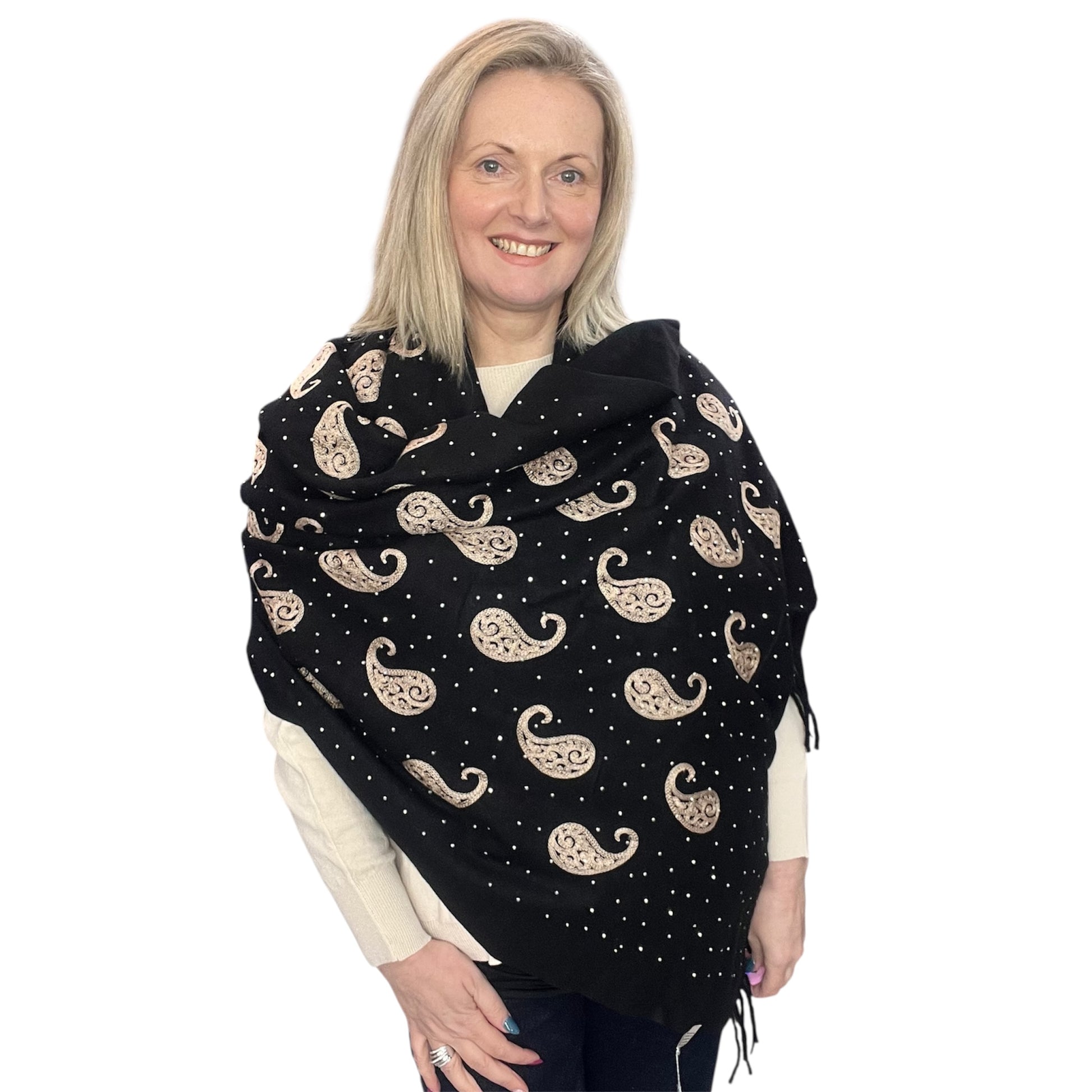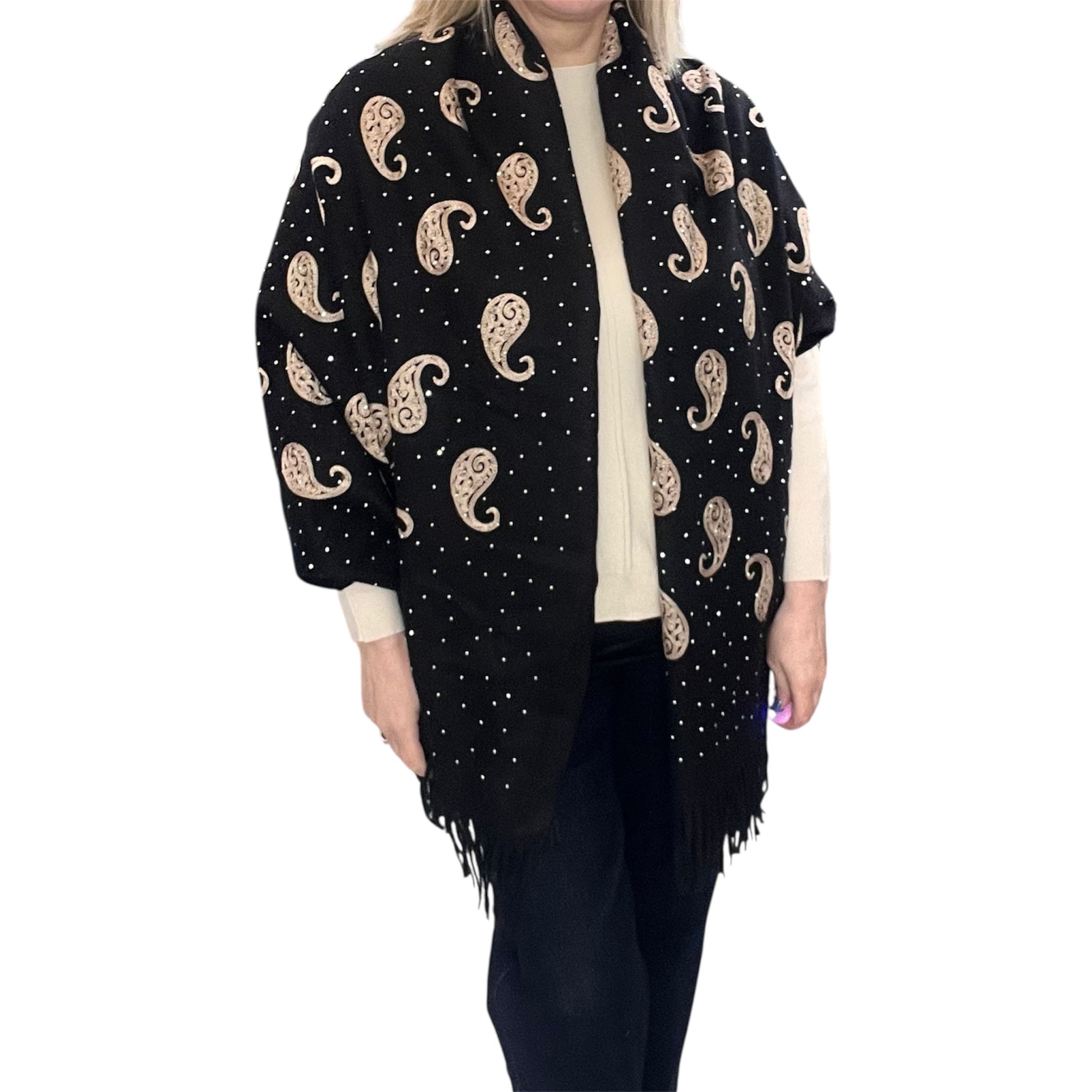 Black Pashmina Embroidered Design & Crystals