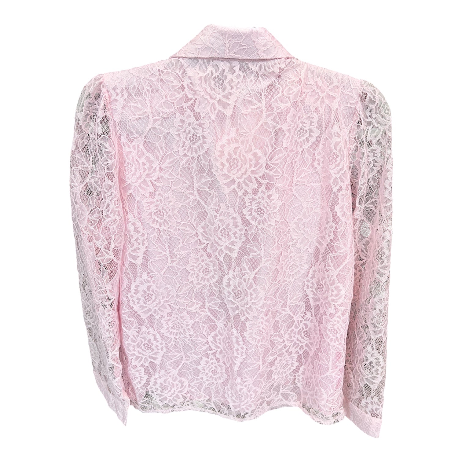 Romantic, feminine and effortlessly elegant, our Blush Pearl Vintage Lace Blouse is the ultimate statement piece for your wardrobe. Crafted in delicate pink lace with a soft sheer finish, this blouse features a dramatic ruffled front, oversized collar and beautiful pearl button detailing for that timeless, vintage-inspired look.