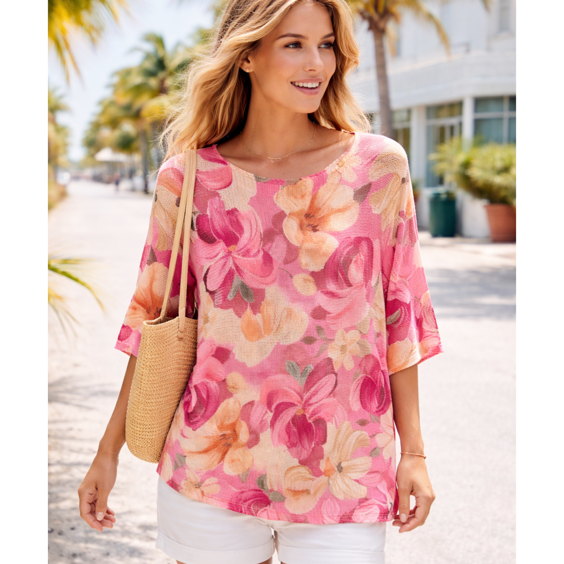 Add a fresh pop of colour to your summer wardrobe with our Fine Knit Top, available at our Irish boutique in Carlingford. Designed in a lightweight, breathable fine knit, this pink floral top is perfect for warm days and effortless styling.