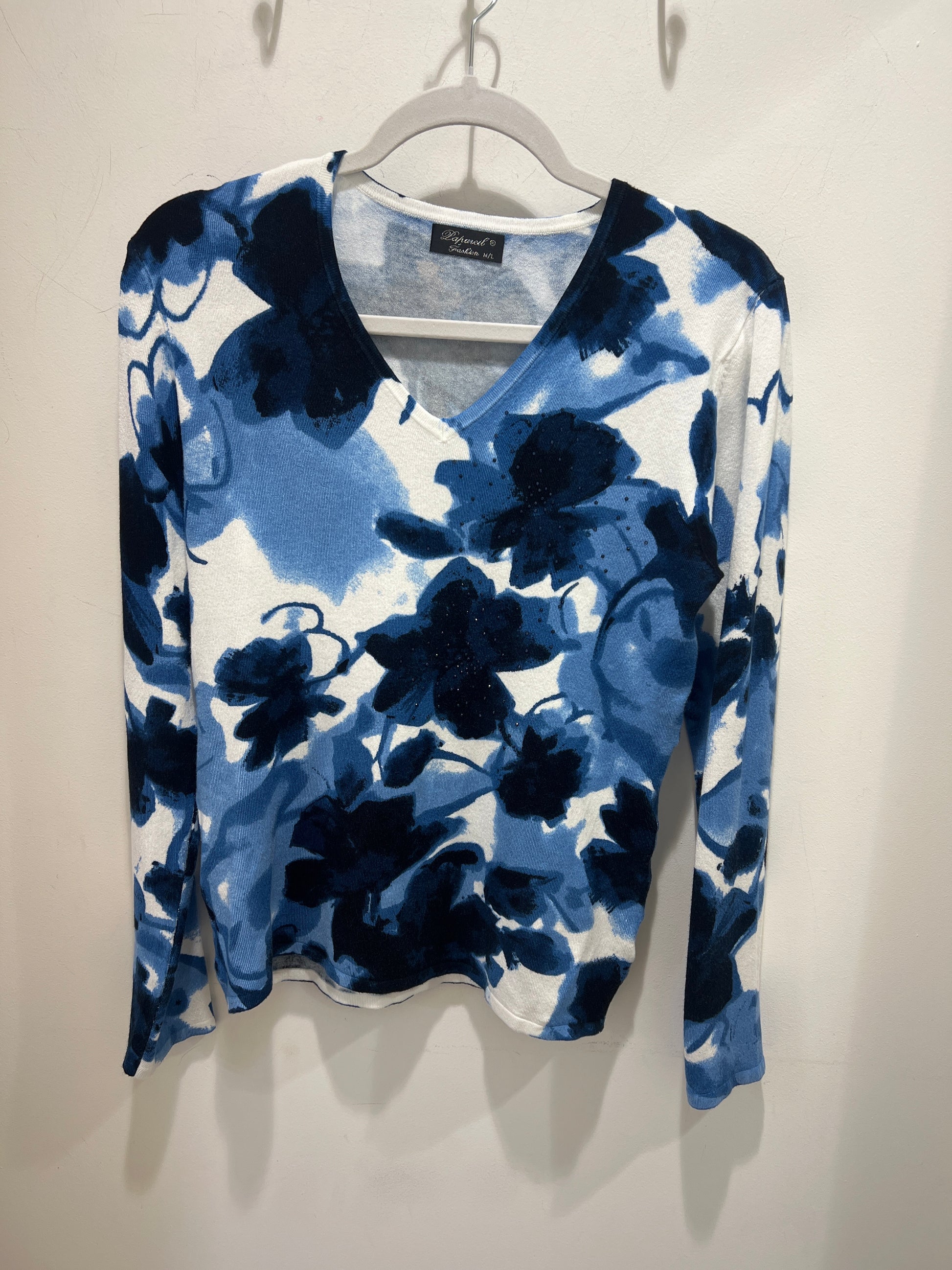 Rita Blue & White Fine Knit Jumper Crystal Design
